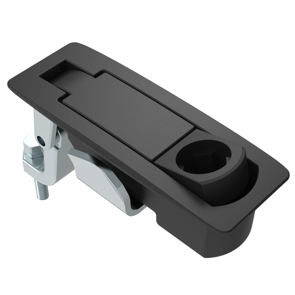 Kompressionsverschlüsse, Hebelverschlüsse, Standard, Mit Schloß, ohne Schließzylinder, Mit Schloß, ohne Schließzylinders, 1-8mm Platte, 23-46mm Haltebereich, Mit Dichtung, Zinklegierung, Pulverbeschichtung, Schwarz